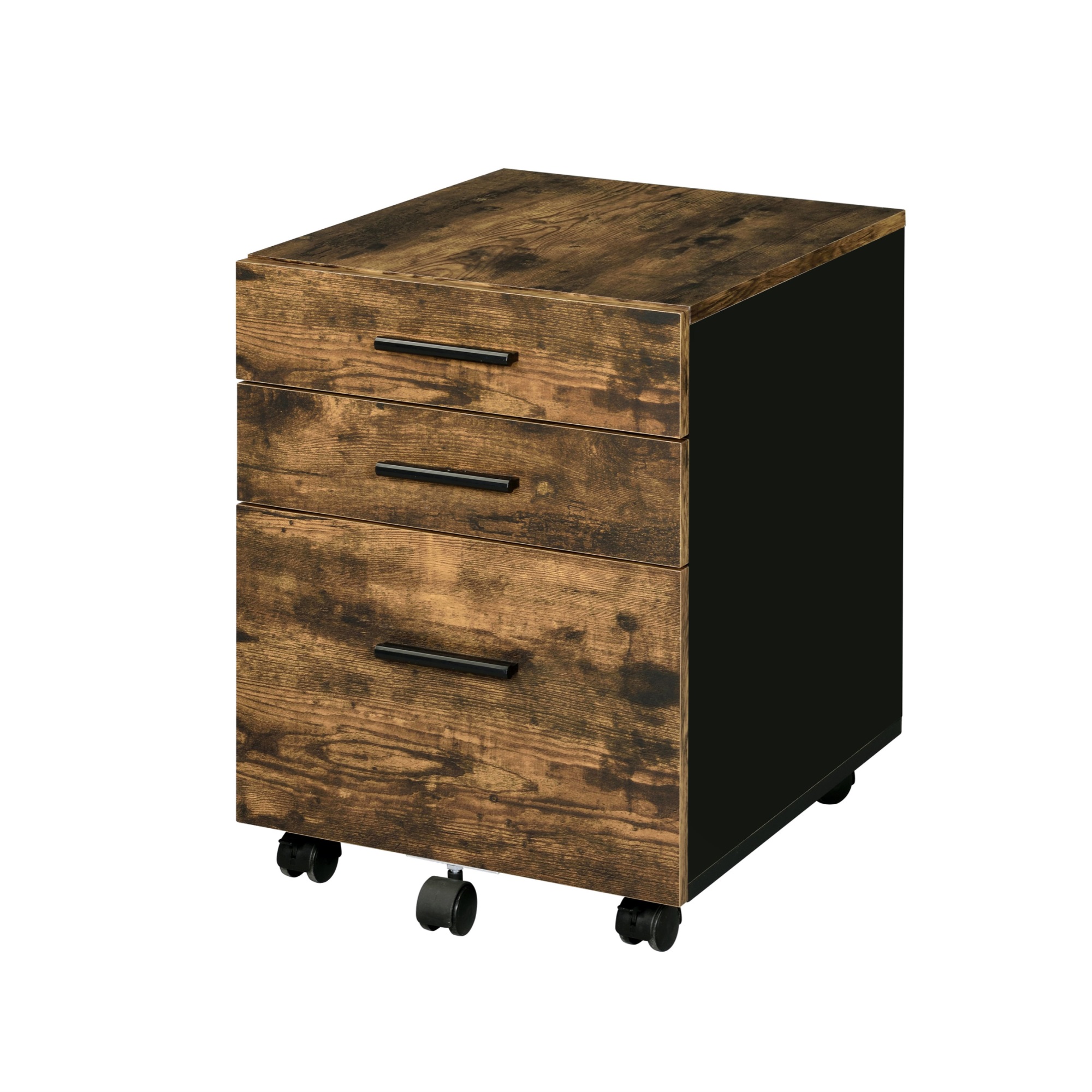Industrial 3 Drawer Wooden File Cabinet With Caster Support Brown And Black Walmart Com